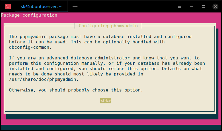 $ sudo apt install phpmyadmin php-mbstring php-gettext