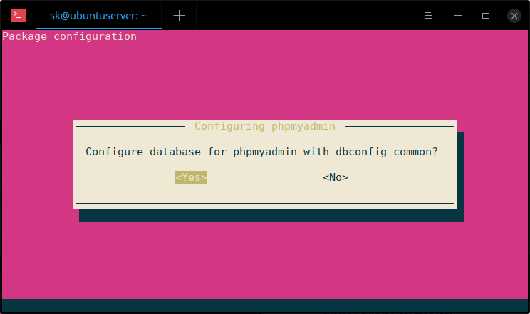 Choose Yes to configure database for phpmyadmin:
