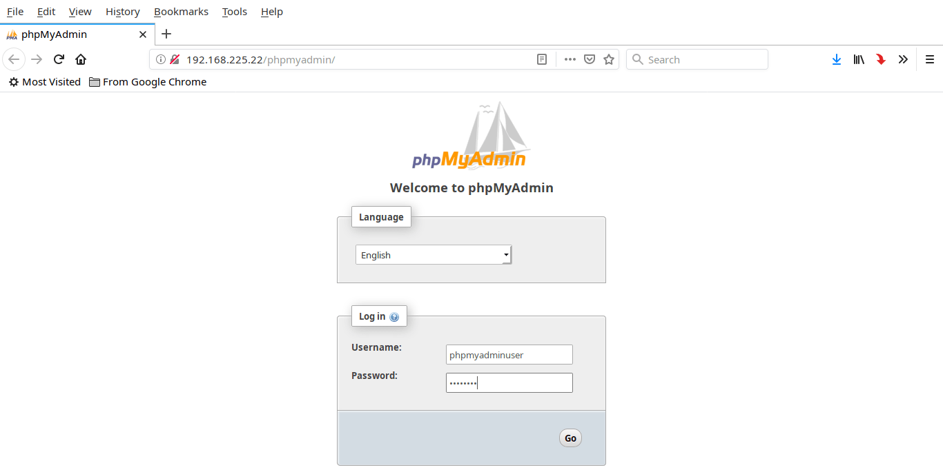 Open your web browser and navigate to http://ip-address/phpmyadmin or http://domain/phpmyadmin. You should see the phpmyadmin login page. Log in to the phmyadmin interface either using mysql root user or the new user which we created in the previous step.