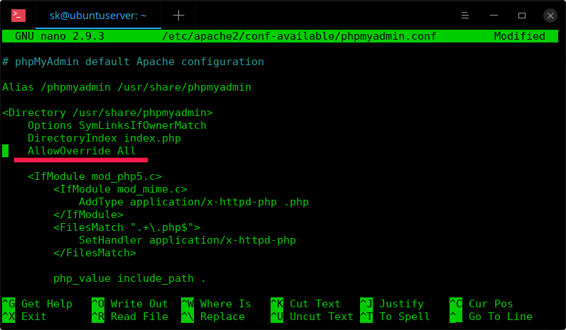 $ sudo nano /etc/apache2/conf-available/phpmyadmin.conf