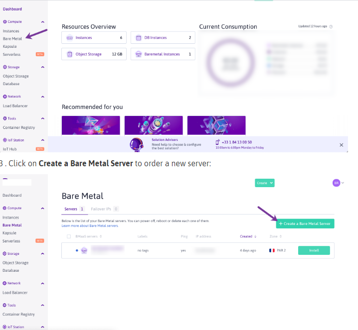 2 . Click on Bare Metal in the Compute section of the side menu: