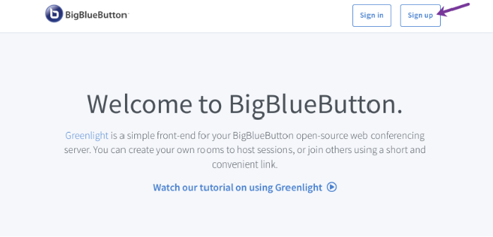2 . The Greenlight front-end displays. Click Sign up to create a new user.