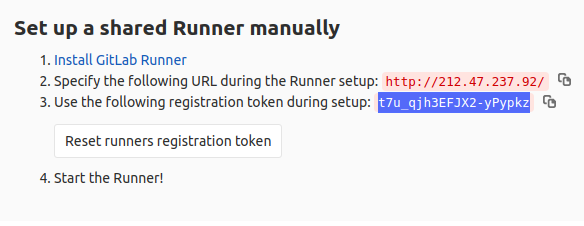 Your GitLab Runner should now be registered against the GitLab instance reachable at: "http://212.47.237.92/"
