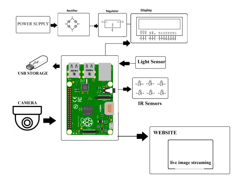 Here we propose IOT based theft detection project using Raspberry Pi where we use image processing on live video to detect theft using motion and also highlight the area where motion occurred. This system secures offices/homes from theft by instantly detecting theft as well as allowing user to view the theft details thereby highlighting the theft details and saving the video in a usb drive. In this system we use a camera along with raspberry pi along with a circuit with LCD display IR for night vision and USB drive for storage. The system is powered y a 12V power supply. As soon as camera motion is detected in camera footage the system uses image processing to detect exact area of motion occurrence and highlights it accordingly. The system now transmits the images of the occurance over IOT to be viewed by user online. We here use IOT Gecko to develop the online system. Also it stores the footage in a USB drive for further reference. The user can now decode the data sent online using IOT Gecko IOT system to view the images of the motion occurance live remotely over internet. Thus the system provides an innovative approach to theft detection using IOT.