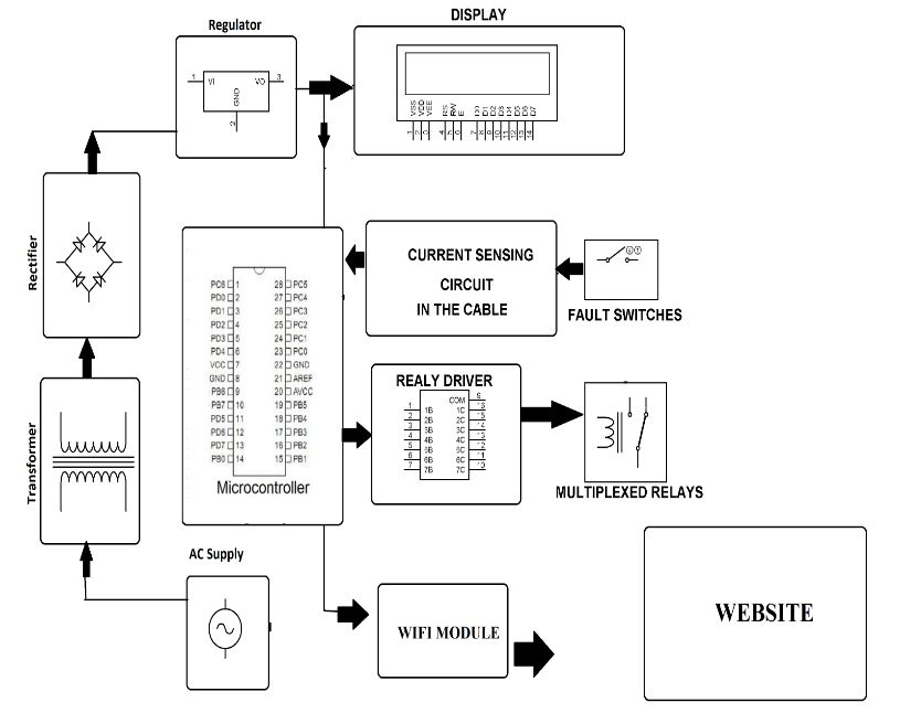 Underground cables are prone to a wide variety of faults due to underground conditions, wear and tear, rodents etc. Also detecting fault source is difficult and entire line is to be dug in order to check entire line and fix faults. So here we propose an cable fault detection over IOT that detects the exact fault position over iot that makes repairing work very easy. The repairmen know exactly which part has fault and only that area is to be dug to detect the fault source. This saves a lot of time, money and efforts and also allows to service underground cables faster. We use IOT technology that allows the authorities to monitor and check faults over internet. The system detects fault with the help of potential divider network laid across the cable. Whenever a fault gets created at a point shorting two lines together, a specific voltage gets generated as per the resistors network combination. This voltage is sensed by the microcontroller and is updated to the user. The information conveyed to the user is the distance to which that voltage corresponds to. The microcontroller retrieves the fault line data and displays over LCD display, also it transfers this data over internet to display online. We use IOTGecko to develop the online system that links with the system to display the cable faults online.